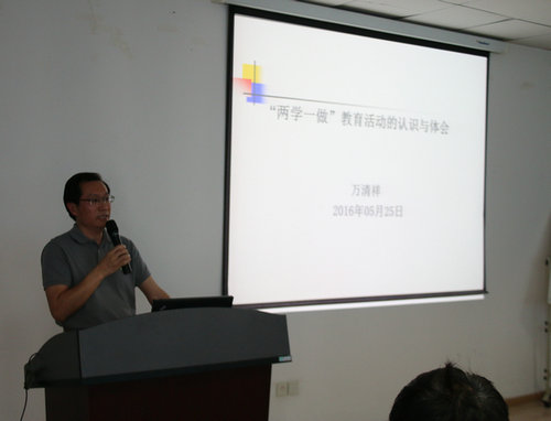 按照中央、省委以及学校党委关于“两学一做”学习教育的总体部署,5月25日下午,402永利集团官网入口“两学一做”专题党课培训会于文华楼517召开。万清祥副校长应邀为永利集团官网讲授了题为“‘两学一做’学习教育的认识与体会”的专题党课,402永利集团官网入口全体教职工党员参加,402永利集团官网入口党委书记刘先国主持会议。