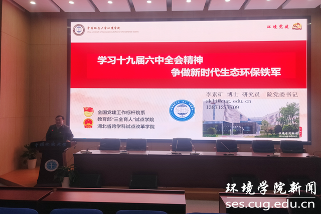 2021年11月24日中午,402永利集团官网入口第七十一期入党积极分子培训班第一课在科教四楼108报告厅展开。402永利集团官网入口党委书记李素矿以“学习十九届六中全会精神,争做新时代生态环保铁军”为题讲授党课。