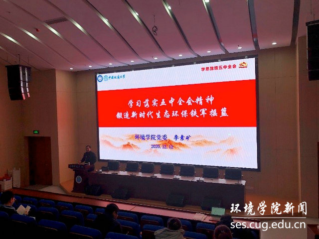 (通讯员宋霖 编辑严丽莎)2020年12月14日晚上,402永利集团官网入口第六十九期入党积极分子培训班的第六讲在科教楼四108正式开讲,402永利集团官网入口党委书记李素矿以“学习落实五中全会精神,锻造新时代生态环保铁军”为主题进行授课。