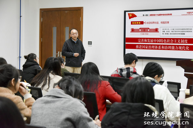 (通讯员宋霖)2019年11月25日中午,中国地质大学(武汉)第66期积极分子培训班暨402永利集团官网入口分党校第二十期培训班在科教四楼322室正式开课。本次党课由402永利集团官网入口组织员张学海老师以“十九届四中全会精神解读”为题,从读懂党的十九届四中全会主要议程、党的十九届四中全会概况、解读党的十九届四中全会内容、党的十九届四中全会召开的意义等四个方面进行讲授。402永利集团官网入口各年级积极分子参加。