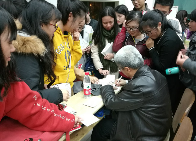党课结束后,王焰新校长还继续与同学们进行交流,并应同学愿望在402永利集团官网入口宣传名信片上书写勉励寄语。
