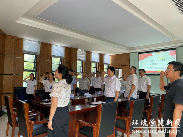 402永利集团官网入口党委书记李素矿、大气科学系主任李双林、党支部书记孔少飞以及教工党员;武汉区域气候中心党委书记、主任夏智宏,科长马德栗,金沙国家大气本底站站长、支部书记王凯,副站长岳岩裕等20余位党员参加。王凯主持主题党日活动,岳岩裕带领全体党员重温入党誓词。