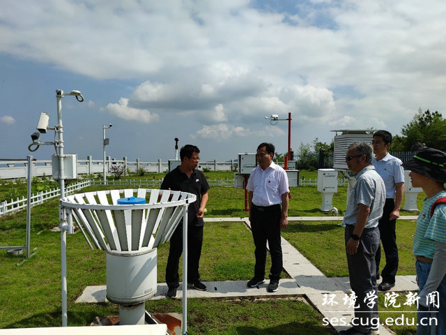 李素矿讲话。他表示,此次参观位金沙国家大气本底站,与站上的同志一起参加联合主题党日活动,非常高兴和激动。看到金沙站从过去的简陋条件到现在高大上、高精尖的一流软硬件设备,为此翻天覆地的变化感到高兴。看到武汉区域气候中心服务国家和地方需求功不可没的成就,眼前一亮。金山本底站不仅是科学研究的重要支撑点,也形成深厚的文化底蕴,站上工作人员对各种仪器设备如数家珍,站内墙上随处可见党建宣传材料和各项规章制度建设,值得学习。他指出,地大与湖北省气象局十多年来局校合作成果丰硕,402永利集团官网入口大气科学菁英班更是局校合作的一个重要硕果。通过建立菁英班,推动了局校合作的进一步深化,坚定了学校推进大气科学专业建设的信心,促进了学校地球科学系统发展。