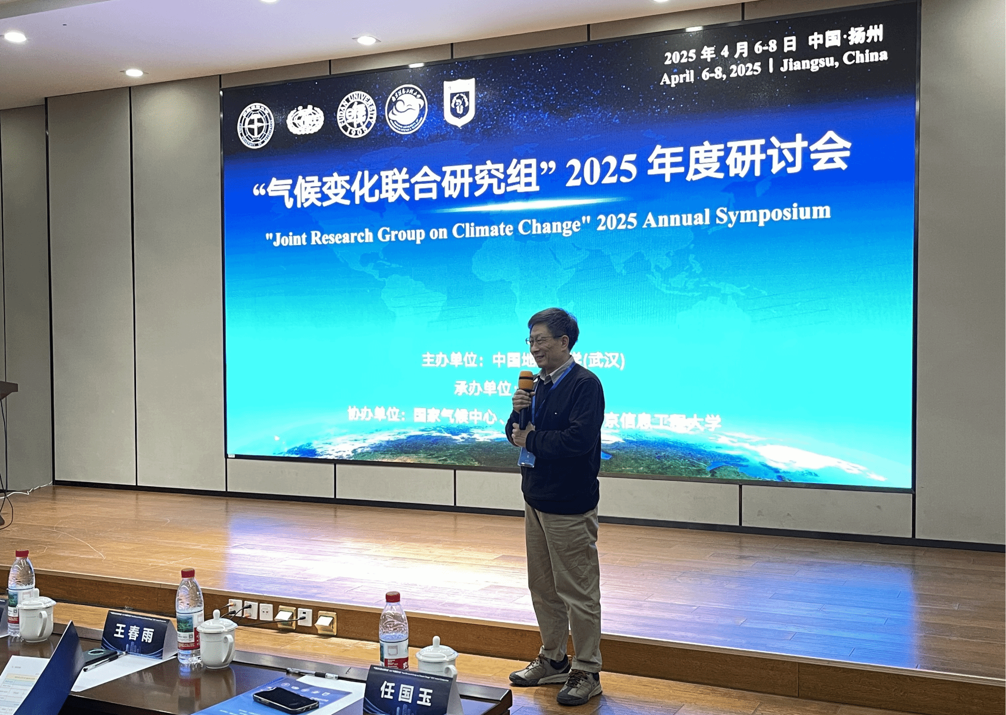 (通讯员/摄影范德方、王泠力 编辑王孟雪)2025年4月7-8日,“气候变化联合研究组”年度学术研讨会在江苏扬州举行。会议承办方扬州大学封国林教授主持开幕式,副校长蔡颖蔚和物理科学与技术学院院长涂育松出席并致辞;主办方中国地质大学(武汉)任国玉教授联合主持开幕式和大会特邀报告;会议协办方复旦大学、南京信息工程大学和国家气候中心游庆龙教授、杨元建教授和任玉玉正高级工程师,以及相关单位专家胡经国教授、袁嘉灿研究员、刘玉莲正高工和吴永萍教授分别主持各专题报告。