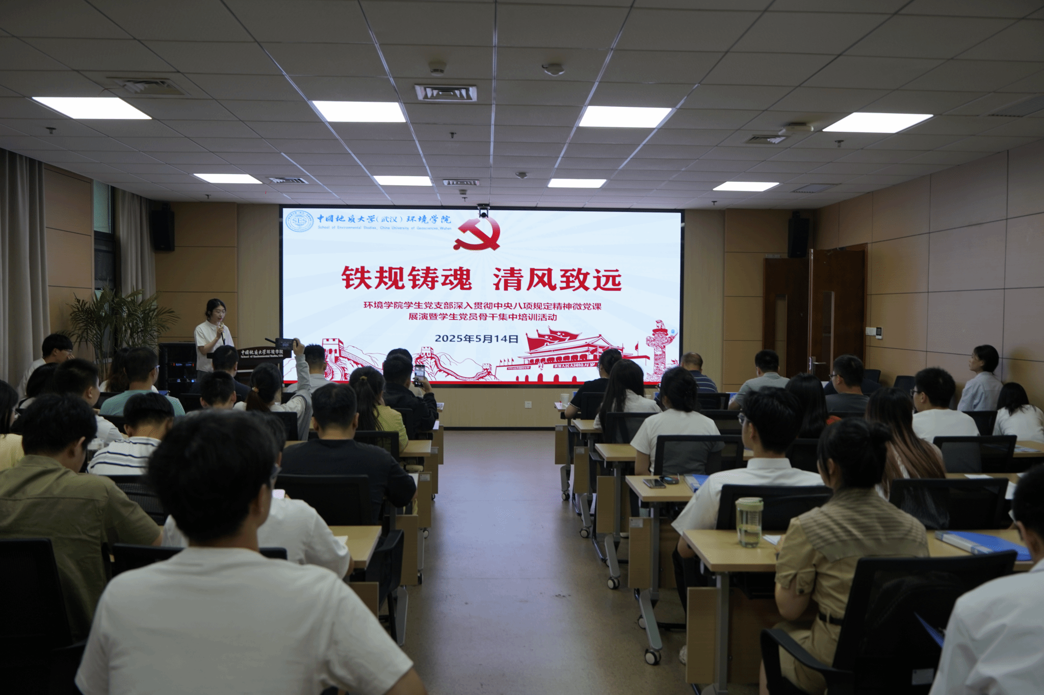 主持人介绍本次活动规则,学生党支部依次进行展演,展演内容由支部风采展示和微党课展演两部分组成。环境污染物识别与风险控制研究生第二党支部、新能源学院学生党支部、水文专业大学生党支部、环境工程专业大学生党支部、地质环境保护与生态修复研究生党支部依次进行展演。