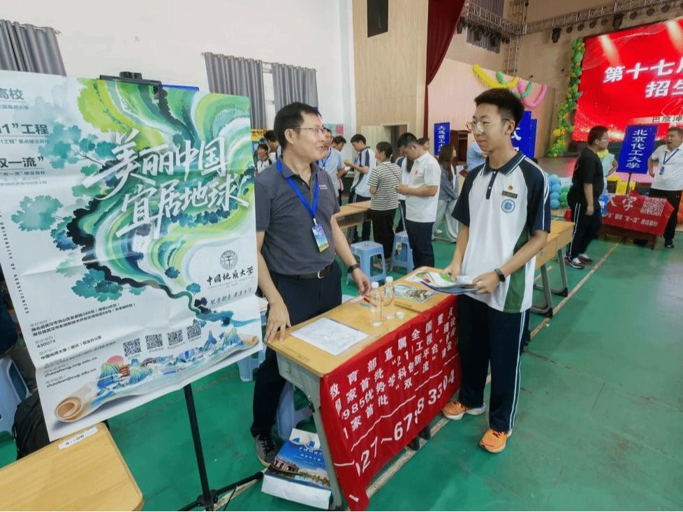 通讯员宋霖 摄影招生宣传师生 编辑王孟雪)为深入贯彻学校党委《关于进一步深化改革 扎实推进教育强国建设地大实践的行动方案》精神,全面落实“优质生源工程”战略部署,402永利集团官网入口高度重视、周密策划,紧紧抓住高考志愿填报的黄金窗口期,于6月24日至29日组织各系室教师,火速奔赴全国多地,开展了一场覆盖广泛、深入人心的招生宣传活动。学院教师以高度的责任感和使命感,深入招生咨询一线,全方位、多维度展示学校和学院魅力,着力提升学校社会美誉度与环境学科优质生源报考吸引力。