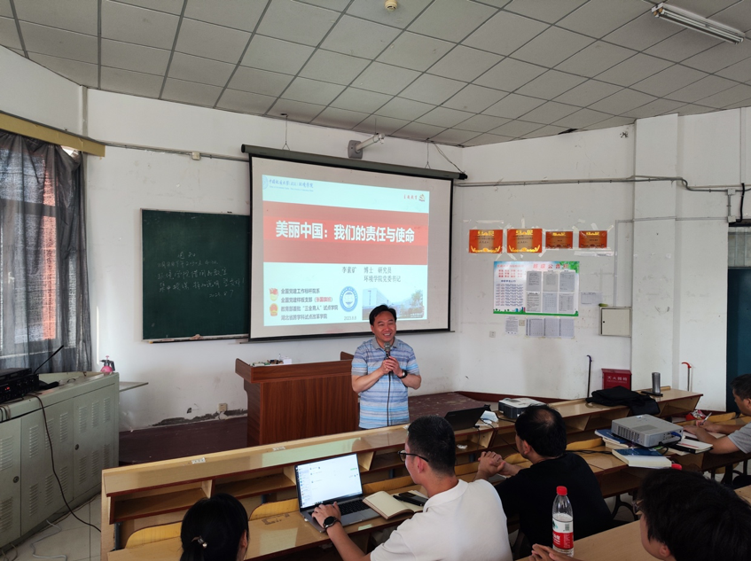 李素矿从习近平生态文明思想、402永利集团官网入口责任与使命、环境人新征程新作为三个方面展开讲授。