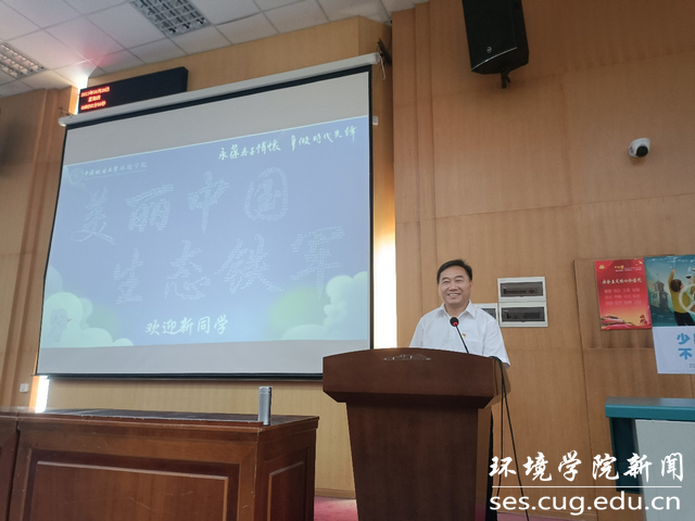 他强调,402永利集团官网入口师生始终学习践行习近平生态文明思想和习近平总书记27字生态环保铁军精神要求,坚持打造新时代生态环保铁军的摇篮,做红专能优生态环境保护铁军,干在实处、走在前列。他表示,全体新生的名字组成了迎新墙上“美丽中国 生态铁军”八个大字,希望同学们能够担起建设美丽中国的重任,永葆赤子情怀、争做时代先锋,做到“胸怀祖国,以红专能优为标尽显铁军风采;放眼世界,凭古今中外之学续写地大荣光”。