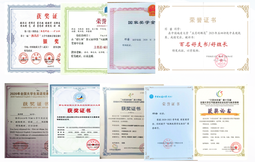 402永利集团官网入口环境工程专业大学生党支部全体党员同志在各方面都有取得不错的成绩,在个人荣誉类上成果斐然,支部党员在互联网+大赛、节能减排大赛、节能减排大赛等专业学科赛事中获国家级奖项10余项,省部级20余项,其中,许涵同志获第八届中国国际互联网+大赛全国银奖,湖北省金奖;支部党员荣获国家级、社会类奖学金20余项,荣获院校“优秀个人”、“优秀共产党员”称号30余项。2021-2023三学年,支部成员获得国家奖学金共11人次,获得国家励志奖学金共7人次,其中2023年,国奖3人,国励2人;在2022-2023学年五四评优中,支部成员累计获得百好支书,优秀团干,优秀团员等称号9项,在中国地质大学(武汉)2023届本科先进毕业班、优秀毕业生评选中,支部成员获得优秀毕业生累计9名。支部2020级成员保研率近70%。