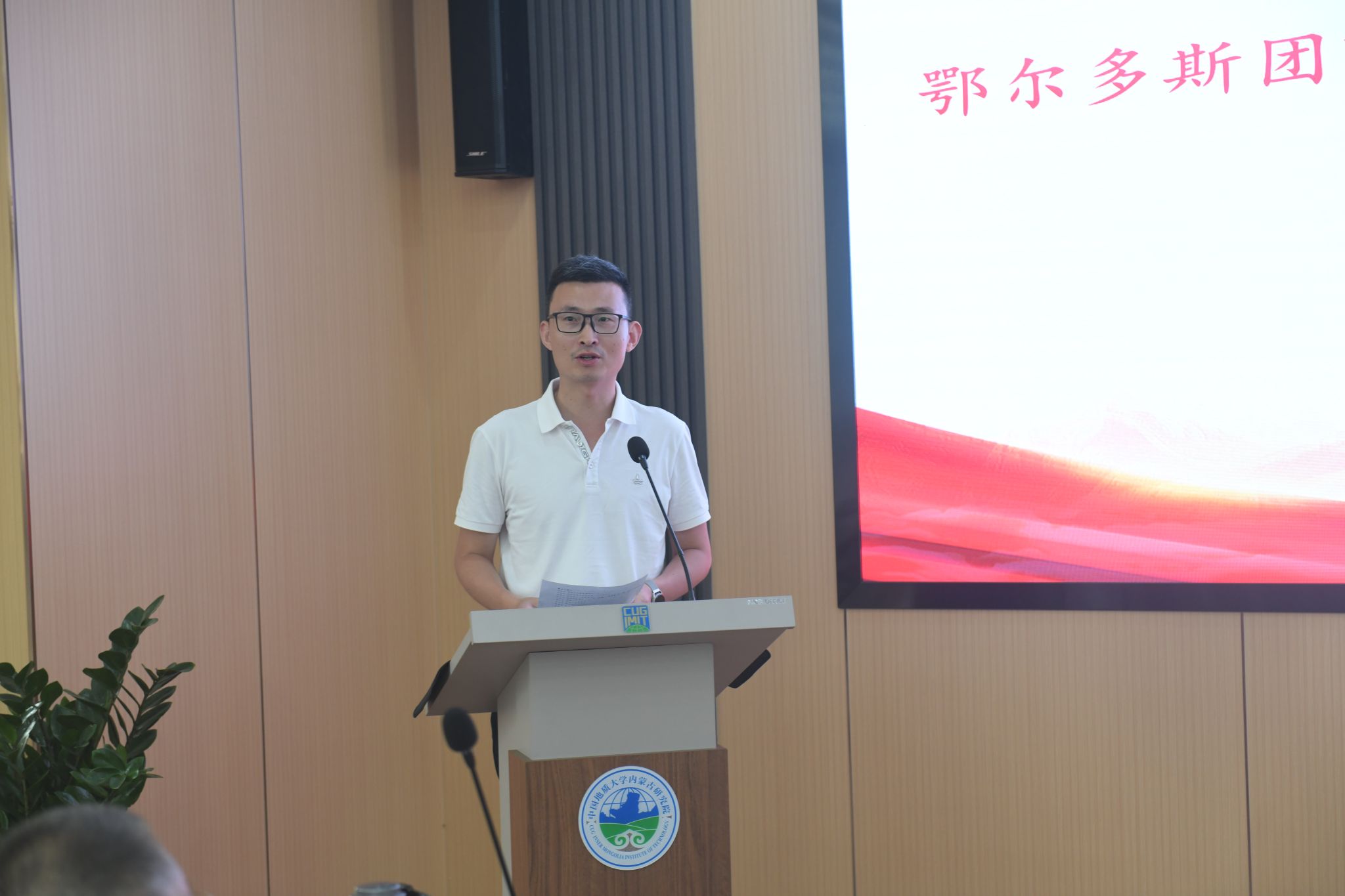 402永利集团官网入口团委书记孟庆达汇报学院暑期社会实践工作体系和鄂尔多斯专项社会实践开展情况。