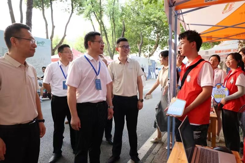 学校党委书记刘杰、党委副书记王甫一行走访南望山迎新点