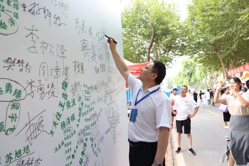 9月2日下午,左岭社区民警韩红卫警官也来到未来城迎新点,对新同学开展了防诈教育,并在展板上写下“天上不会掉馅饼”的告诫,希望同学们擦亮自己的双眼,不要落入诈骗团伙的圈套。