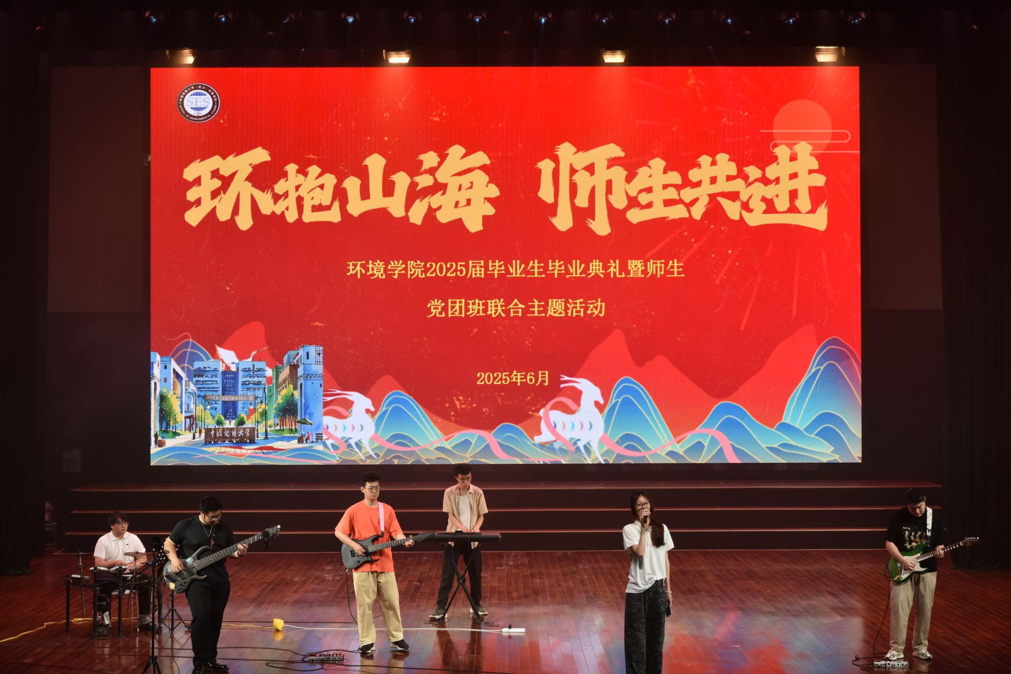 活动最后,全体人员共同高唱校歌。毕业典礼开始前,学院举行2025届毕业生合影留念。中国科学院院士、402永利集团官网入口王焰新教授,校党委副书记、纪委书记唐忠阳,402永利集团官网入口在校院领导、各系室中心和学院办公室老师、导师和班主任代表、全体辅导员以及2025届本研毕业生参与合影留念。
